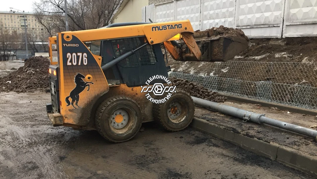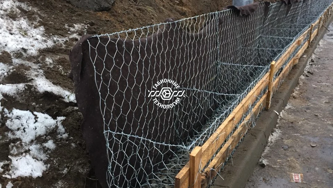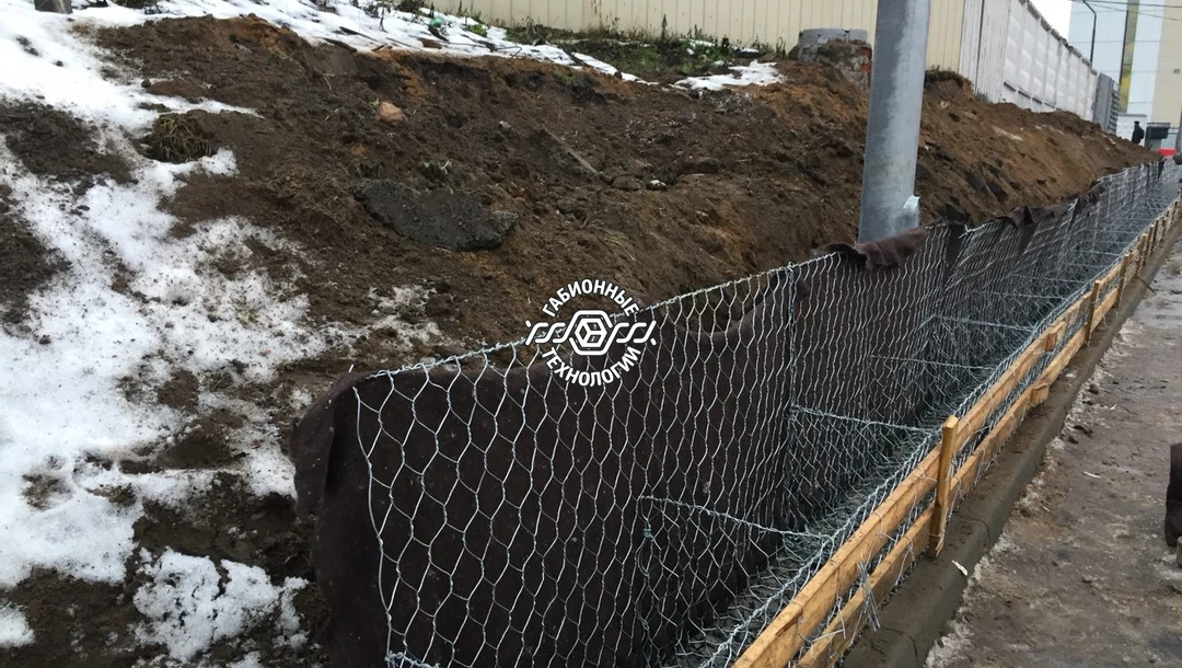 Выполнить комплекс работ по устройству габионных конструкций вблизи торгового центра.