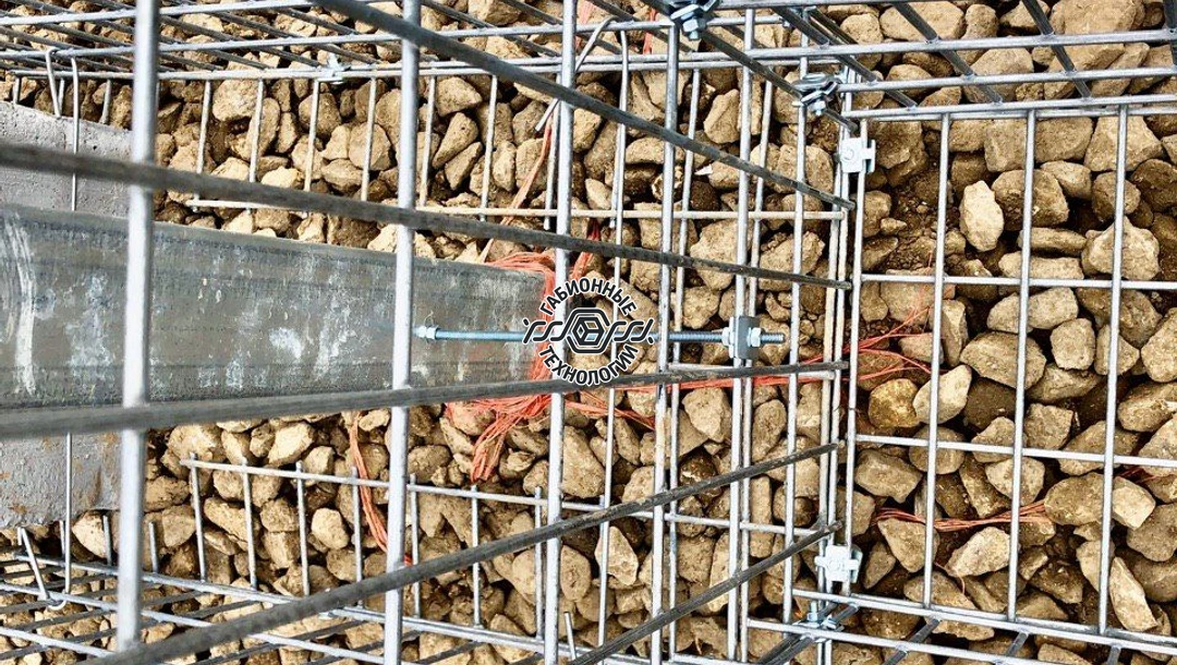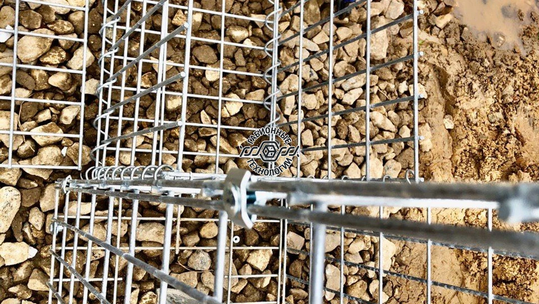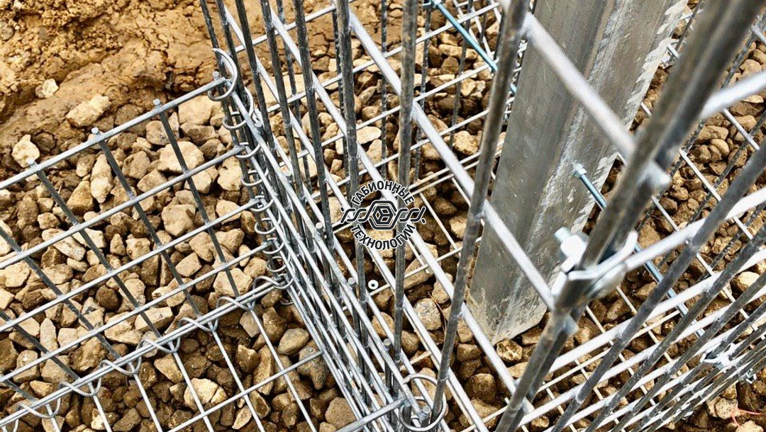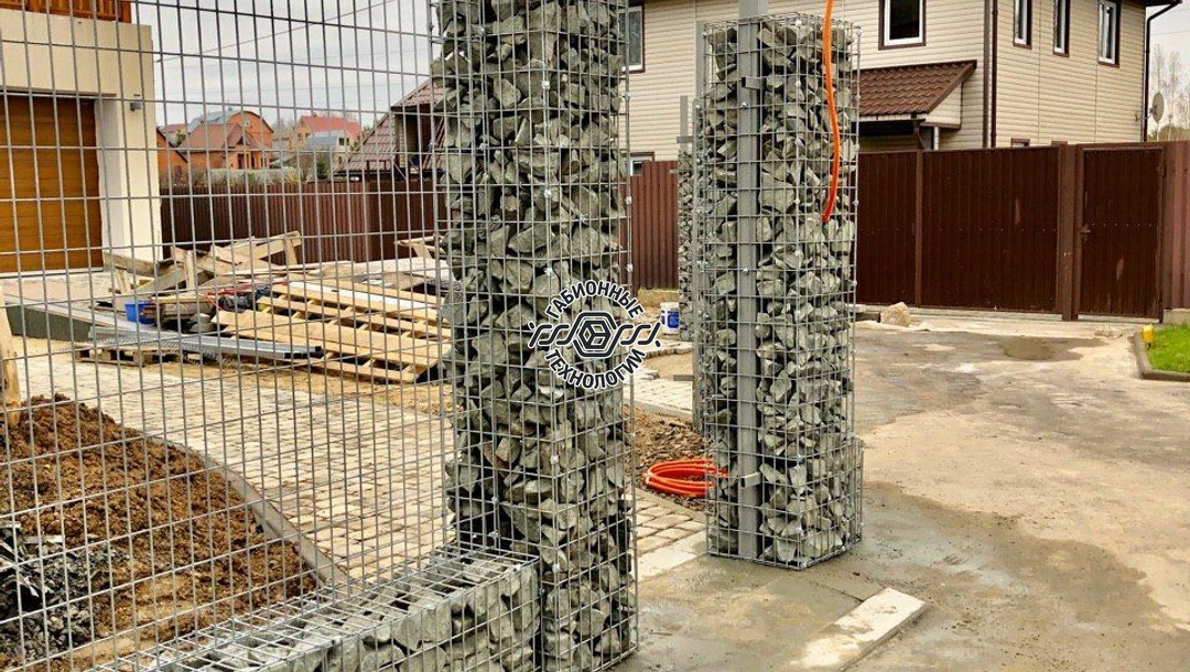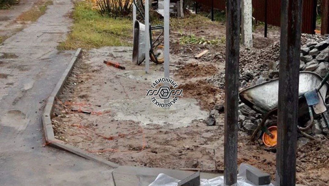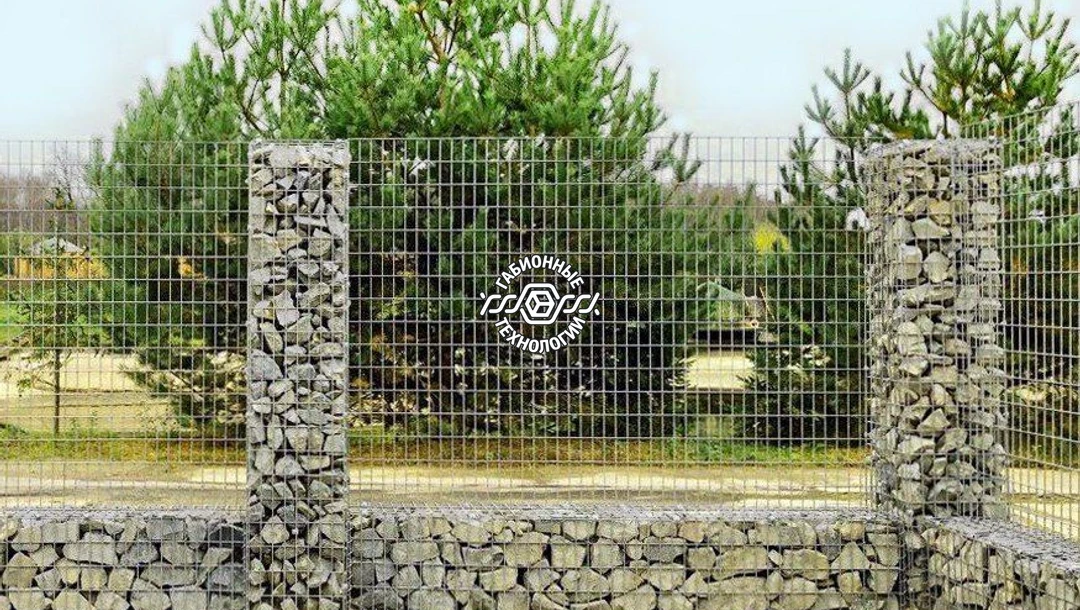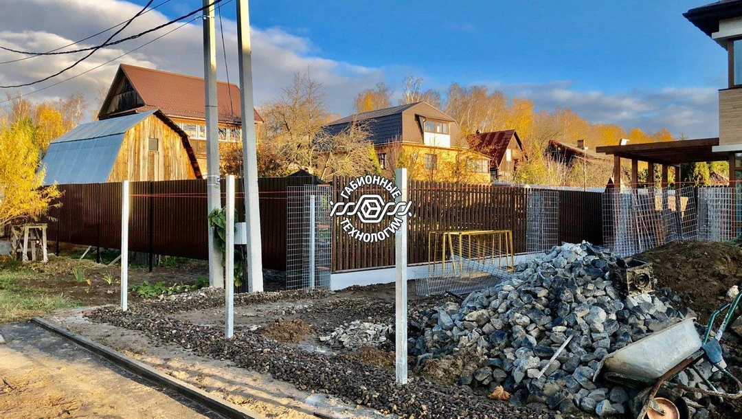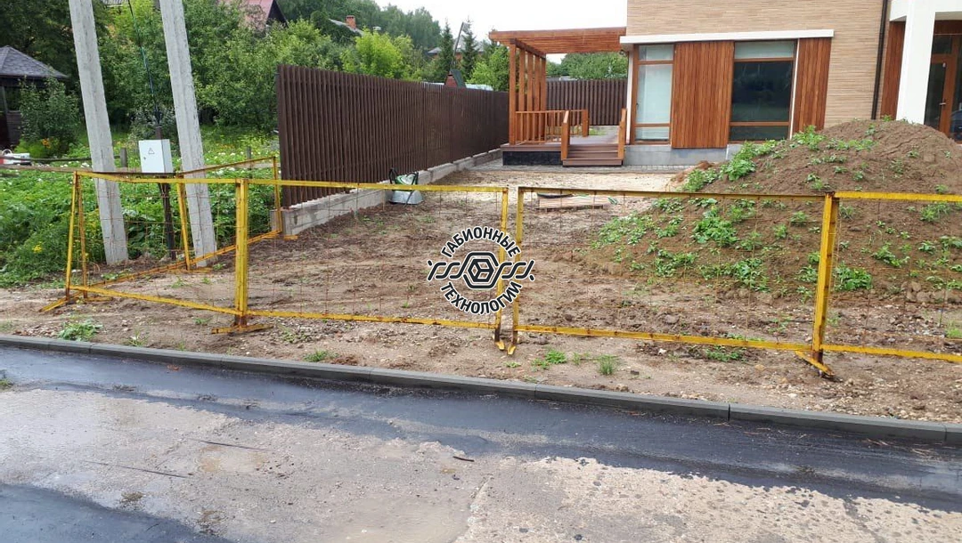 Требовалось соорудить забор длиной 20 метров на частном участке. Цоколь и столбы — из сварных габионов, пролёты — из сварной сетки. Было необходимо строго следовать задумке заказчика, точно соблюсти размеры, предусмотреть проёмы под ворота и калитку.