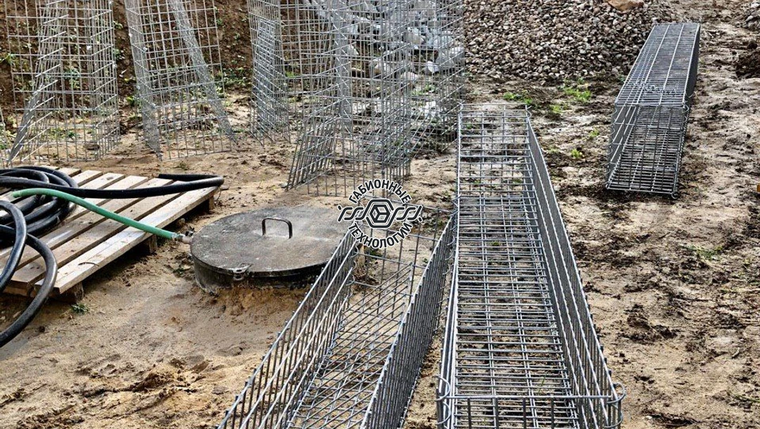 Для монтажа нестандартного забора мы использовали габионы, которые по индивидуальному заказу изготовила компания «Реконструкция». Все габионные конструкции разной длины. Они позволили создать ограждение с плавными поворотами и максимально «сроднить» его с ландшафтом.