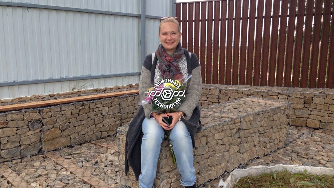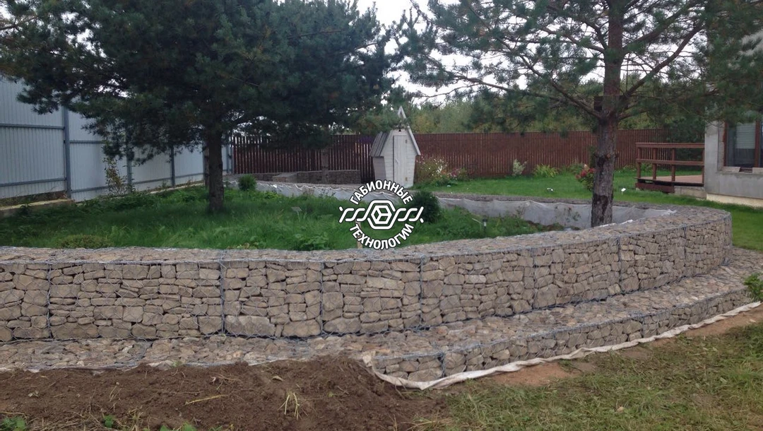Специалисты компании «Габионные Технологии» выполнили террасирование участка с применением габионно-сетчатых изделий. При обустройстве зоны отдыха были установлены закладные под настил террасной доски. Чтобы не повредить деревья и подчеркнуть естественную красоту площадки, подпорную стенку решили сделать неклассической формы — с изгибами.