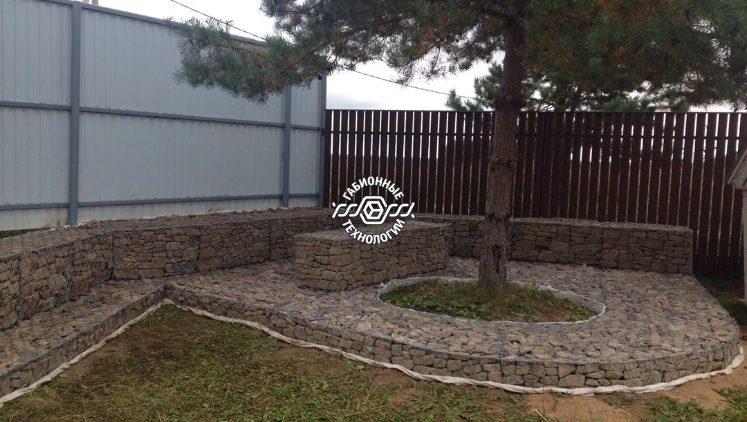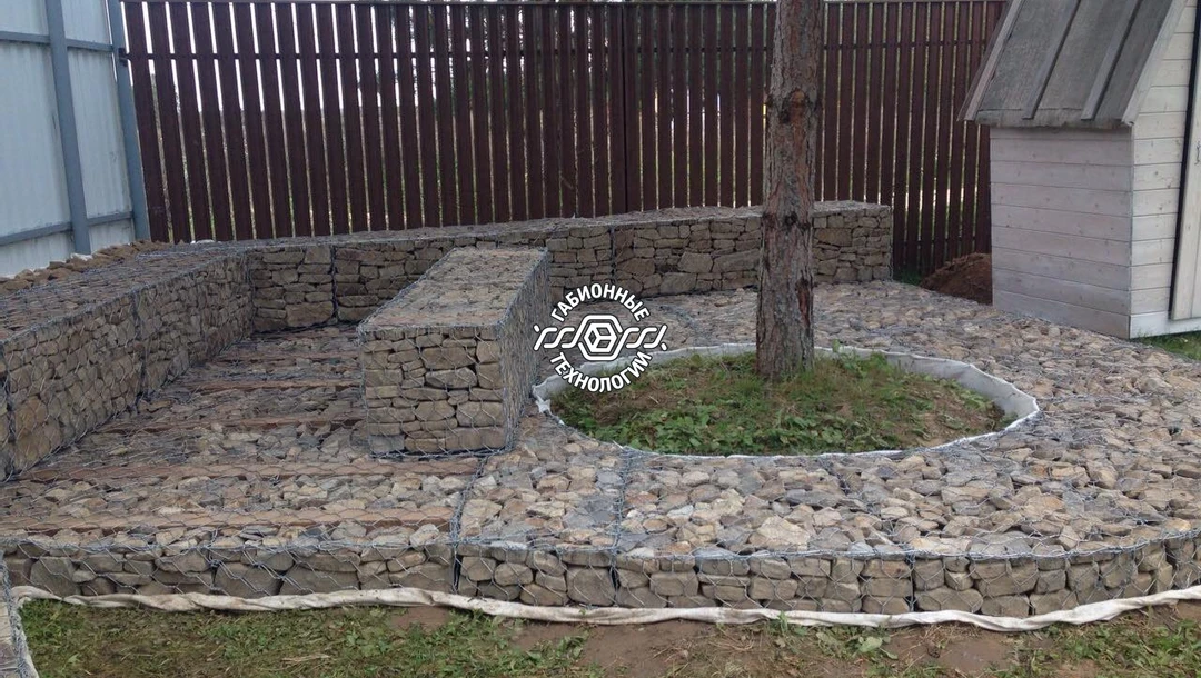 Террасирование, подпорная стенка из габионов и зона отдыха