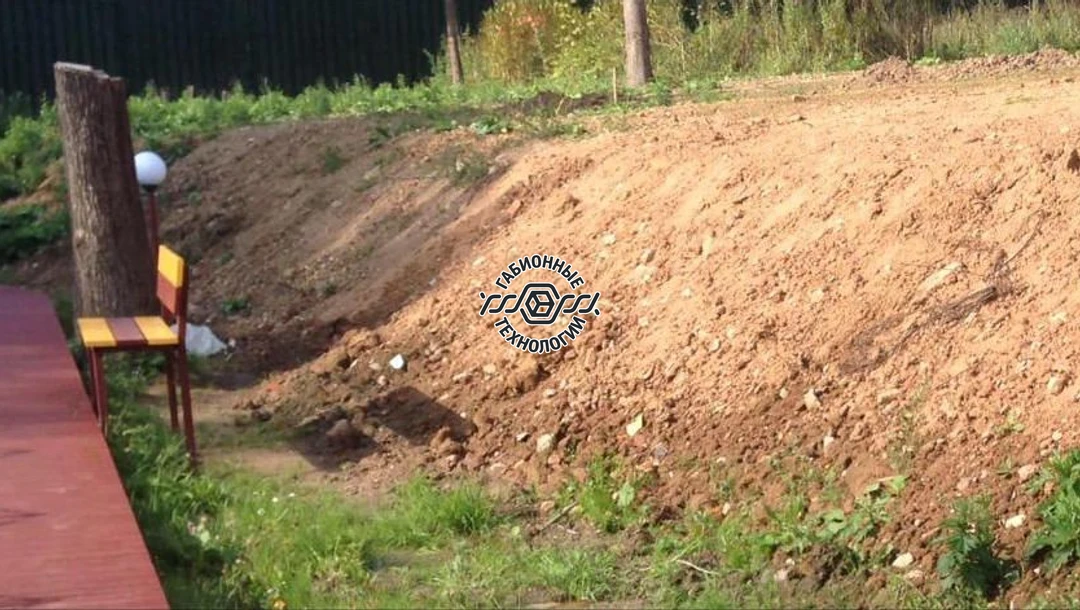 Укрепить склон, поставить подпорную стенку из габионов и 3D забор